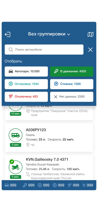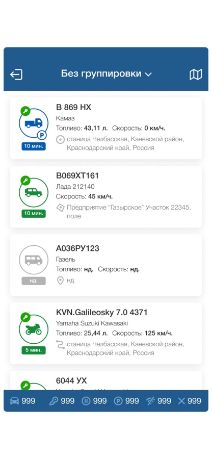 Работа с объектами: Отслеживайте параметры движения, зажигания и местонахождения объектов, а также актуальность полученных данных;