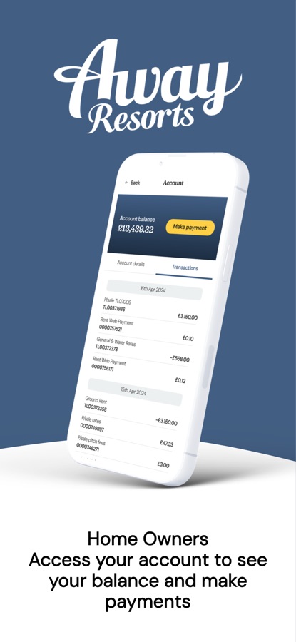 The Away Resorts app is the perfect companion for holidaymakers and holiday home owners. Sign-in with your Away Resorts booking or owner reference number to explore and discover your Away Resorts.