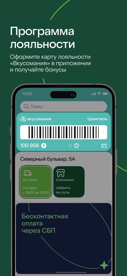 Оформите карту лояльности «Вкусомания» и пользуйтесь привилегиями постоянных клиентов.