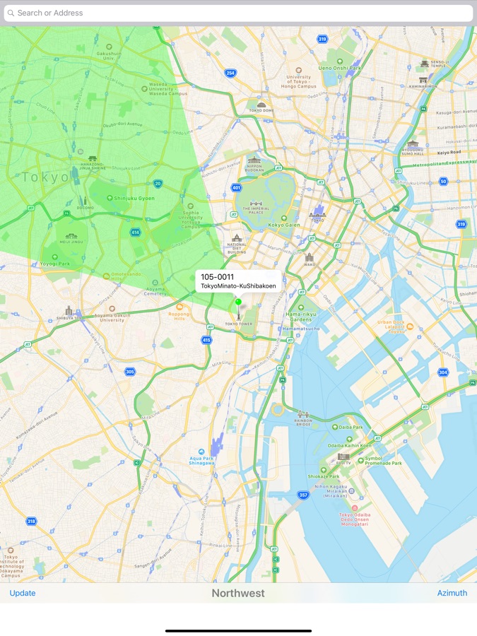 Azimuth Maps is an application that can be displayed on the map the orientation of the reference areas. Each cardinal orientation is 30 °, 60 ° to each other, you can view or each at 45 °.
