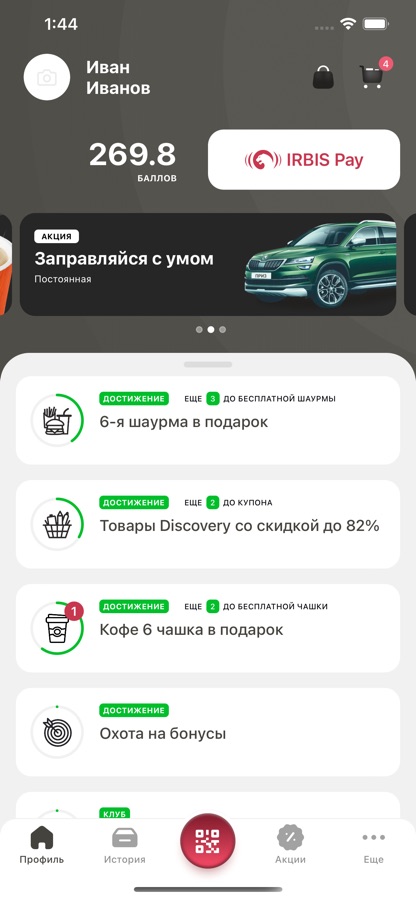 С мобильным приложением АЗС «Ирбис» бонусная карта и персональный гид по эксклюзивным акциям всегда в Вашем кармане.