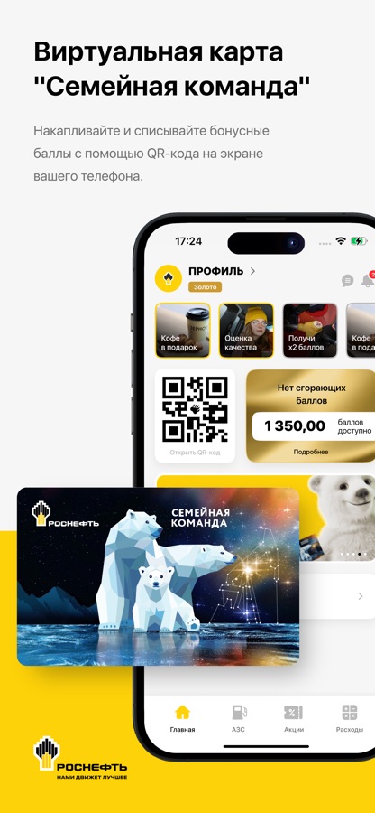 Мобильное приложение розничной сети АЗС «Роснефть» – это удобный помощник автомобилиста, который всегда у вас под рукой. Виртуальная карта программы лояльности «Семейная Команда», баланс бонусных баллов, карта АЗС, информация о ценах на топливо, выгодные акции и специальные предложения, калькулятор расходов на автомобиль – всё это и многое другое в нашем приложении «АЗС Роснефть».