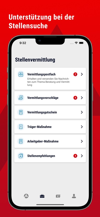 Sie behalten an einer Stelle die Übersicht über Ihre anstehenden Termine, neuen Nachrichten, Vermittlungsvorschläge, Anträge und vieles mehr (auch via Push-Nachricht).