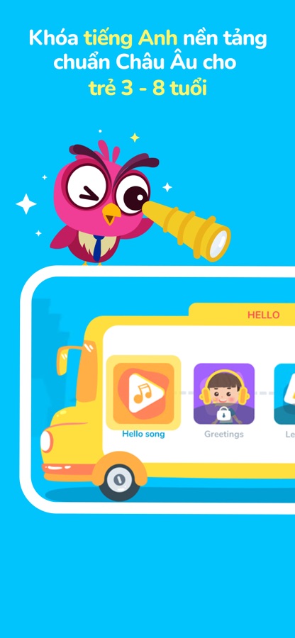 Bé được học tiếng Anh theo lộ trình phù hợp với khả năng và độ tuổi, gồm: 5 cấp độ, mỗi cấp độ có 11 chủ đề, chia làm 22 đơn vị bài học.