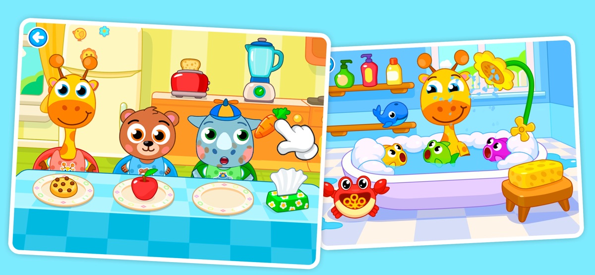 Дети могут попробовать себя в ролях пилота, таксиста, заботливого няни, посетителя парка аттракционов и многом другом! Некоторые активности доступны бесплатно, остальные можно открыть через покупки в приложении.
