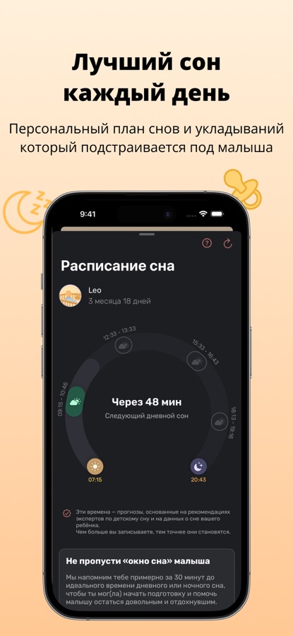 Умный план сна малыша, который подстраивается под твой день.