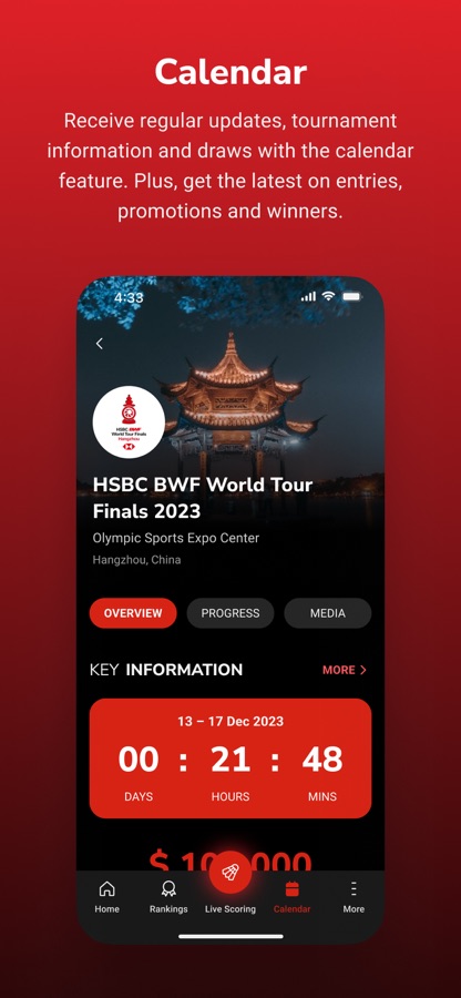 Follow your favourite professional badminton players and tournaments in real-time throughout the season, including the HSBC BWF World Tour and Major Championships