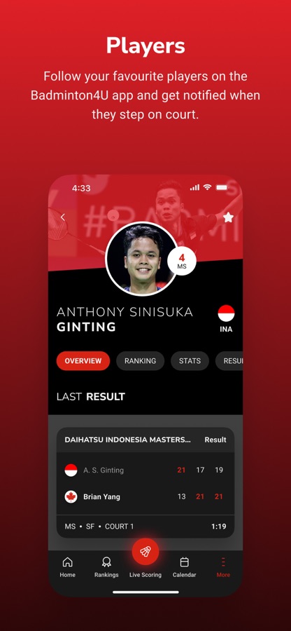 Be a badminton fan like never before! Don’t miss a shot. Download the brand new Badminton4U app today for free, to follow every point, every match, everywhere.