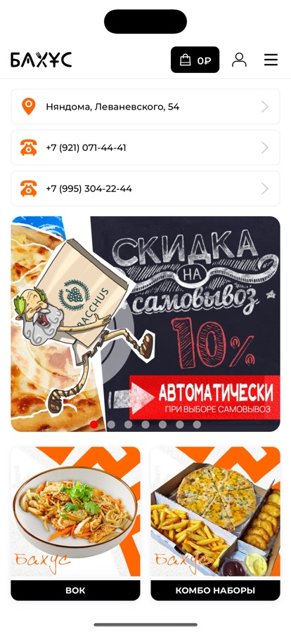 Мобильное приложение Бахус (г. Няндома) разработано для удобства оформления заказа онлайн на доставку готовых блюд на дом.