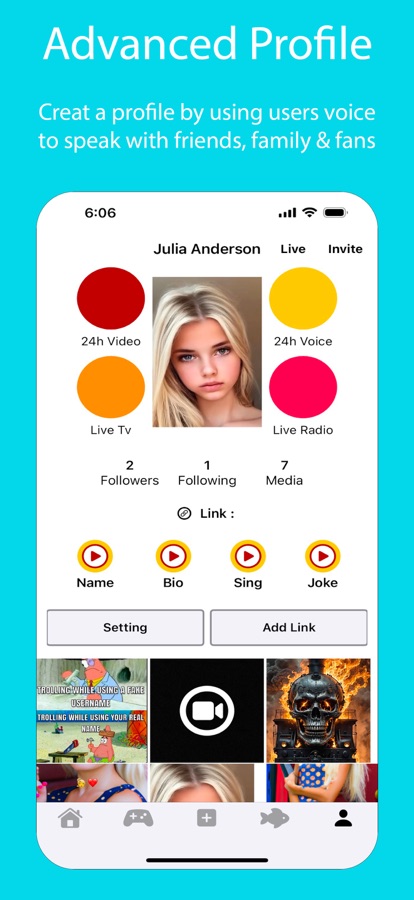 • Bio, record your voice and introduce yourself. Tell your followers and friends «Who are you?»