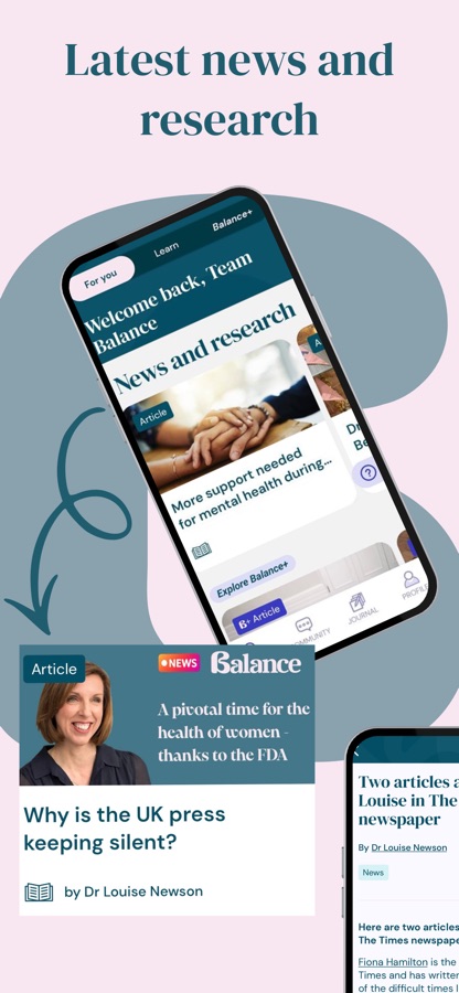 Balance is a free hormone-health app, founded by Dr Louise Newson, that helps you track symptoms, spot patterns, learn from evidence-based content and prepare for your healthcare appointments. Hormone health isn’t just about menopause: Balance supports you across every stage of your life.