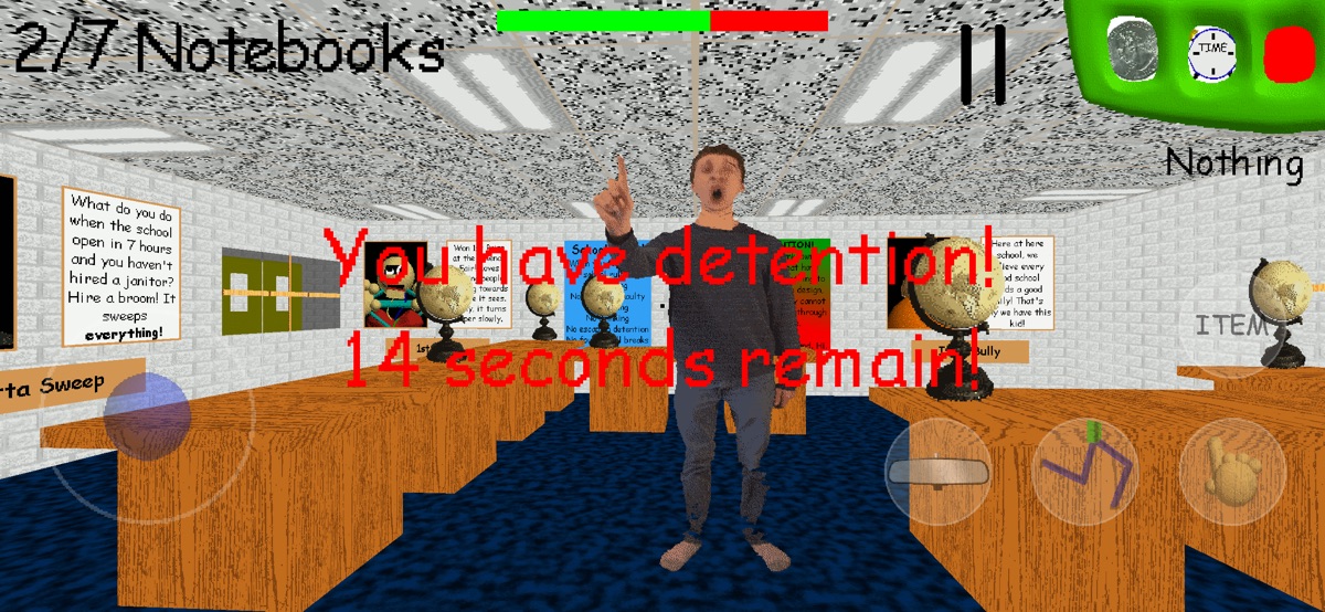 • Story mode requires you to collect 7 notebooks and then escape the school to win. The more notebooks you collect, the faster Baldi will become! Simple, but very challenging.