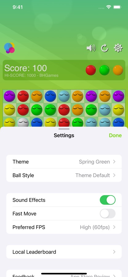 Ball Lines Classic is the iOS port of the once popular classic PC game called Color Lines. The game’s objective is to remove balls by forming lines (horizontal, vertical or diagonal) of at least five balls of the same color. Balls on a line are removed and points are given.