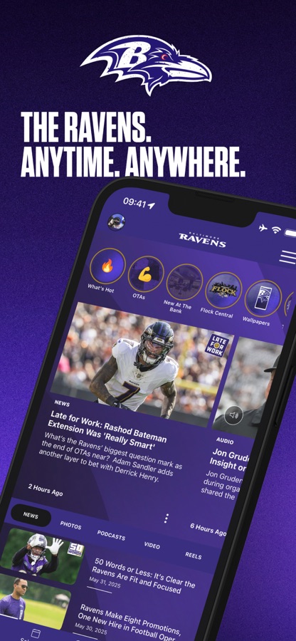 The official team app of the Baltimore Ravens – built for the Flock to be your #1 source for 24/7/365 coverage of all things Ravens. At home, in the stadium and on the go, stay connected with breaking news, exclusive content and everything you need as a fan.