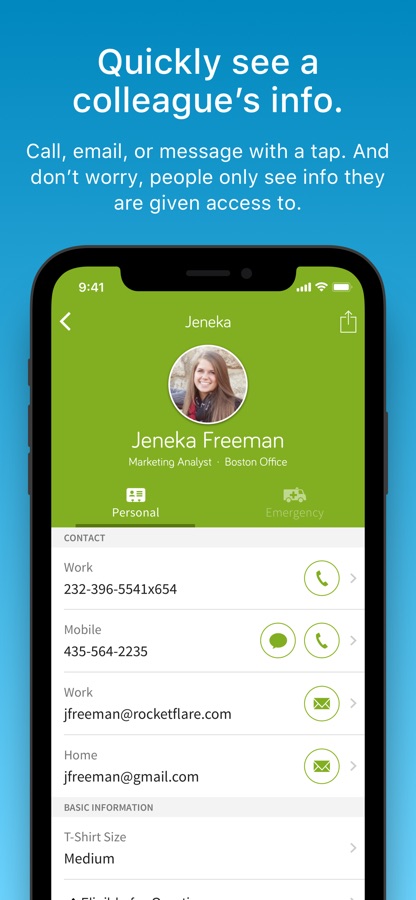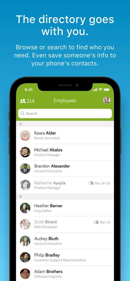 Your company’s phone numbers, emails, photos, titles—your whole company directory goes wherever you do.