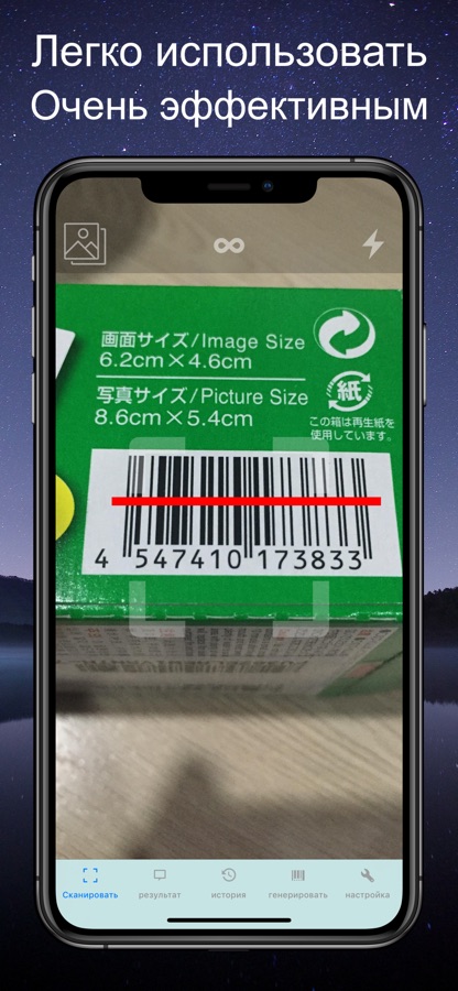 Сфотографируйте штрих-код, получите результат мгновенно или выберите фотографию штрих-кода из фотоальбома для сканирования.