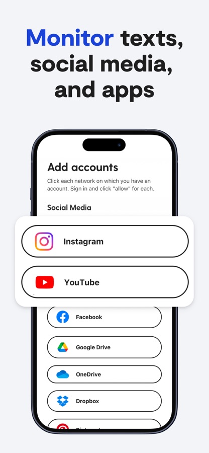 The Bark Kids app allows kids to connect their own accounts to Bark’s monitoring service (not available with Bark Jr). By allowing them to connect directly to our monitoring service, they get more privacy without having to share their usernames or passwords.