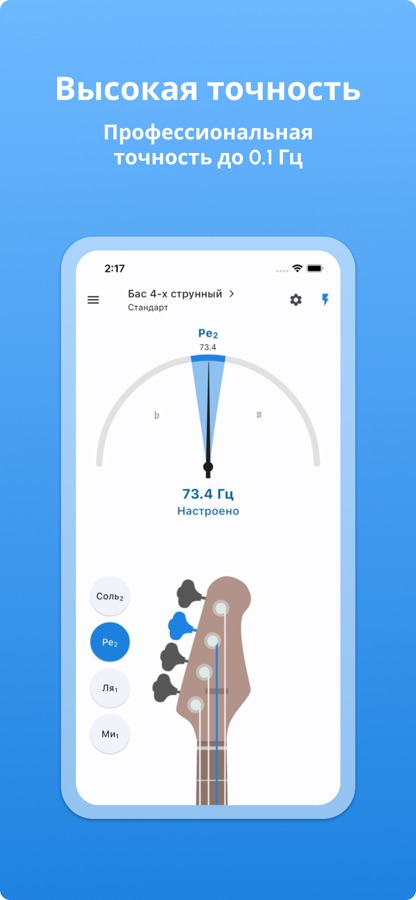 Бесплатно. Без рекламы. Профессиональный басовый тюнер с высокой точностью. Простой и очень эффективный способ настройки бас-гитары благодаря множеству функций.