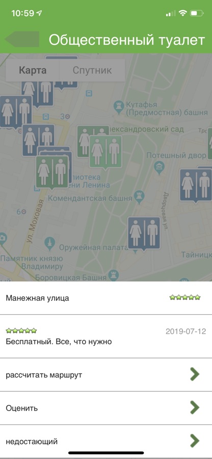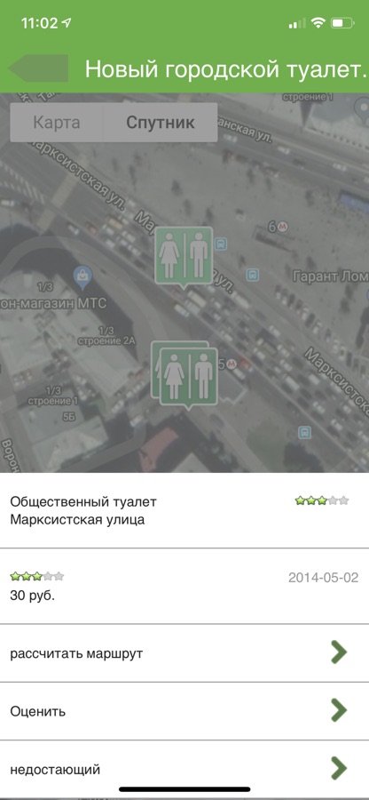 * Возможность рассмотреть окрестность вблизи туалета с помощью Street View (при наличии иллюстраций)