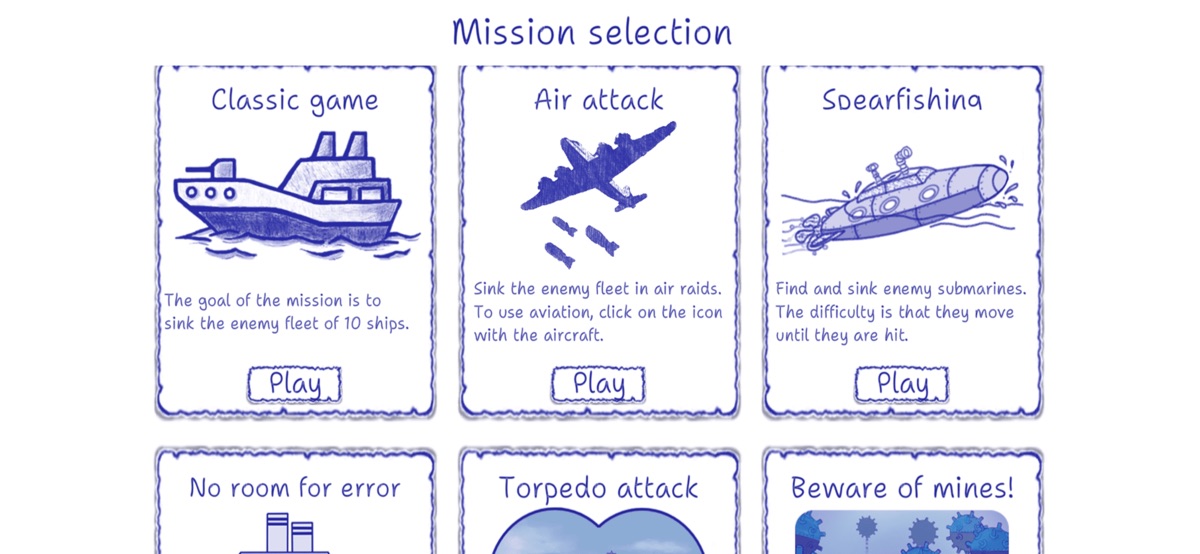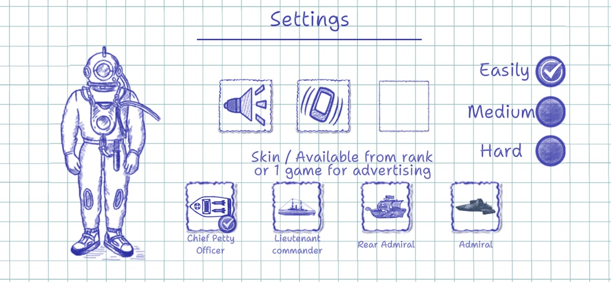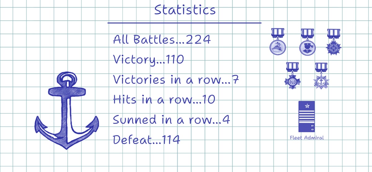 Классическая версия хорошо известной всем игры «Морской Бой». Игра можно либо против бота смартфона, либо по сети, против реального соперника. Стилизация сделана под игру на бумажном листе в клетку. Суть игры – потопить весь вражеский флот.