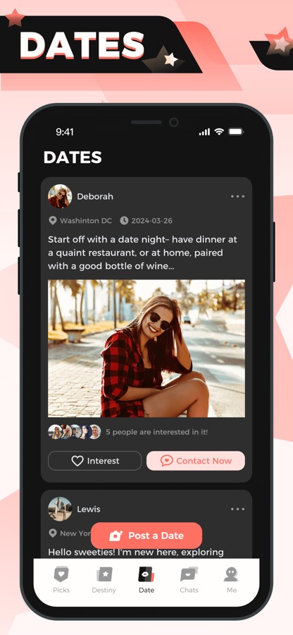 — Dates: Share your plans and desires by posting an event or activity for FREE. Attract others who are eager to join and make new memories together.