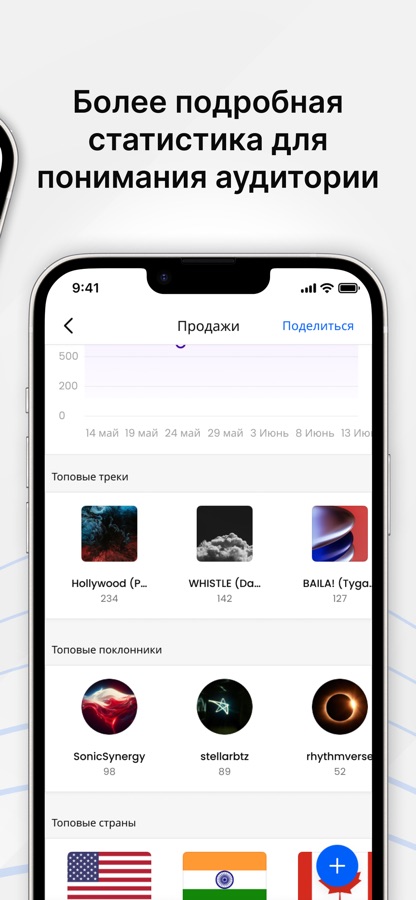 Подробная статистика и данные о продажах: отслеживайте в реальном времени исполнение своих треков или пользуйтесь сохраненными данными. выявляйте ведущие источники, определяйте самые исполняемые треки, новых поклонников и получайте важные сведения из топовых стран.