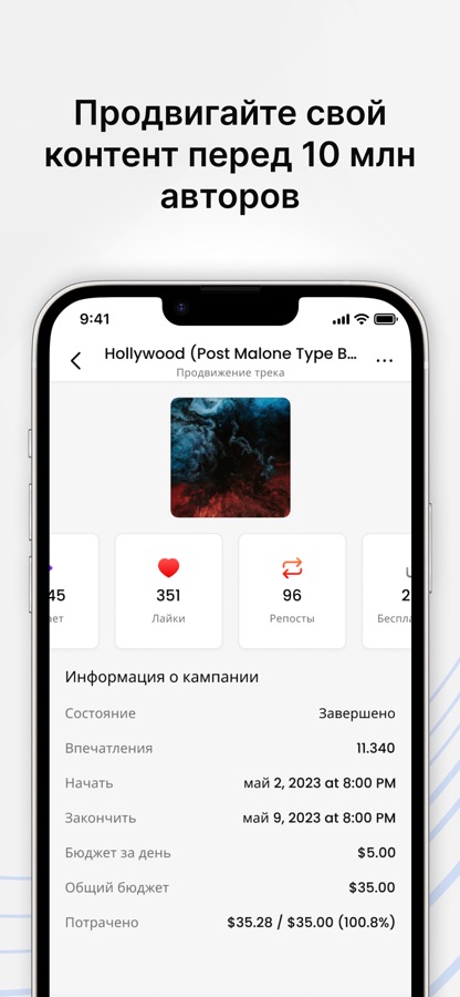 Продвигайте треки: с легкость создавайте и проводите собственные кампании для продвижения треков для миллионов новых потенциальных заказчиков.