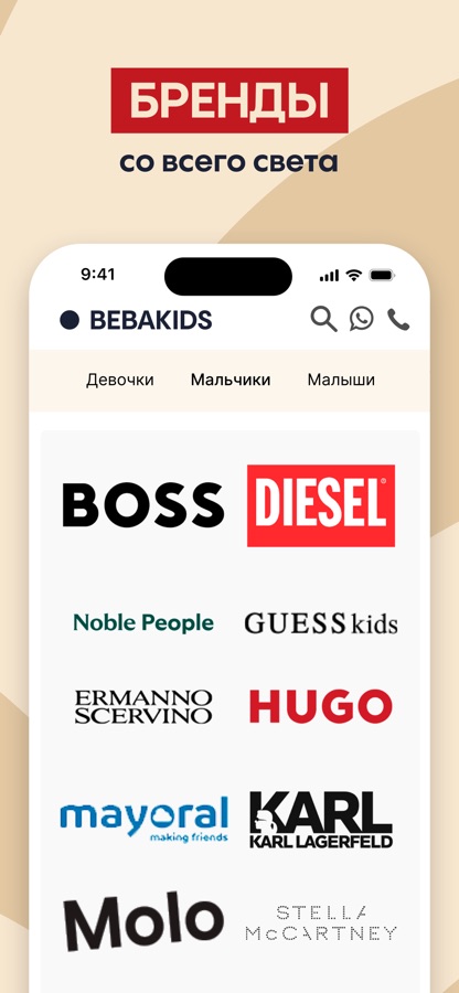 Интернет-магазин детской одежды «BEBAKIDS» предлагает широкий выбор одежды и товаров для детей модных брэндов по привлектельным ценам: детскую одежду, пуховики, полукомбинезоны, обувь, школьную форму, аксессуары, нарядные платья, сумки, ранцы и рюкзаки; детскую мебель, автокресла, коляски, велосипеды, самокаты; игрушки; товары для новорожденных; товары для гигиены и здоровья малыша: радионяни, видеоняни, увлажнители воздуха, косметика для мамы и малыша, детские весы, подгузники, аптечки, игрушки, товары для безопасности ребенка и пр.; В интернет-магазине представлены такие известные мировые брэнды, как Street Gang, Artigli, Noble People, TNY, De Salitto To Be Too, Gaialuna, Skandia, Mayoral, DerDieDas, Erich Krause, Gaudi, Les Trois Vallees, Byblos.