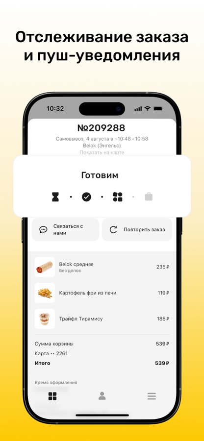 На экране заказа проверьте состав. Добавьте свою контактную информацию в профиле: Имя, Номер телефона и адрес электронной почты, чтобы получать уведомления об оплате.
