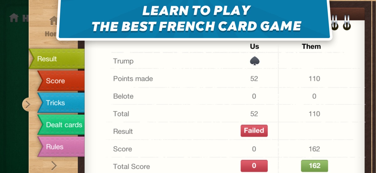 Так чего же вы ждете? Если вы любите клабор, белот и терц, качайте наше приложение Белот / Деберц и наслаждайтесь игрой!