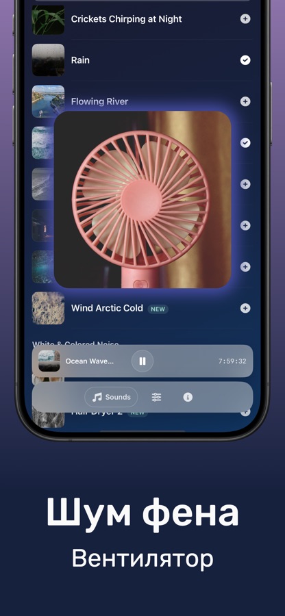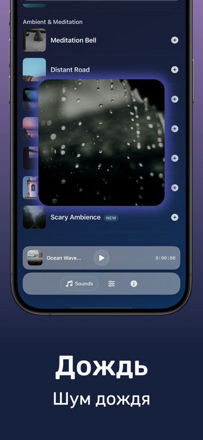 Создавайте персонализированные аудио-среды, смешивая несколько звуков. Комбинируйте дождь с далёким громом, накладывайте океанские волны на мягкий ветер или смешивайте коричневый шум с потрескиванием камина. Ваш идеальный саундтрек для сна — всего в нескольких касаниях.
