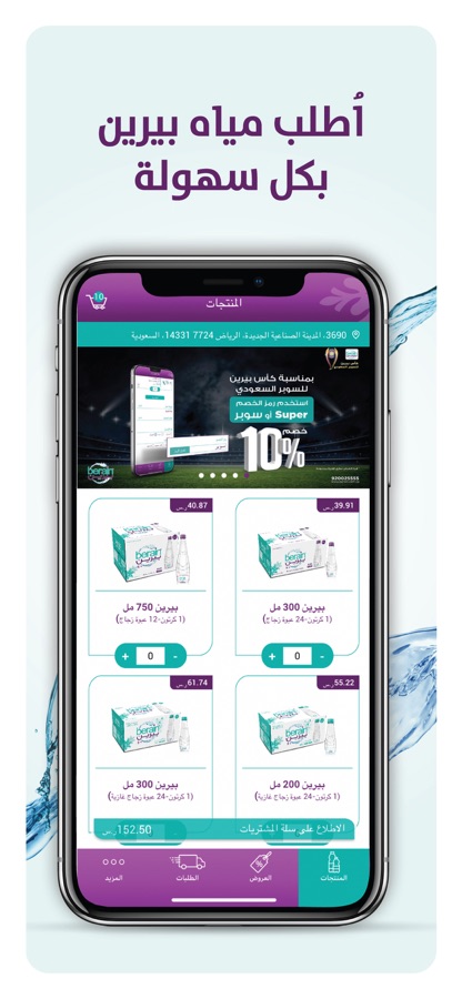 حمل تطبيق مياه بيرين الآن واطلب مياه بيرين عبوات بلاستيك أو زجاج بجميع الأحجام وادفع باستخدام Apple Pay أو بالطريقة المفضلة لديك وسيتم توصيلها لك أو لمن تحب مجاناً في معظم مناطق المملكة خلال يومين عمل.