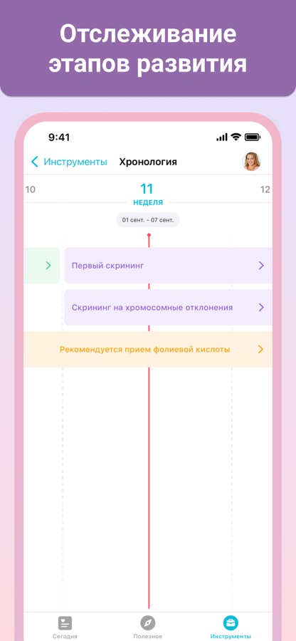 ► Простая и информативная Хронология беременности отображает основные этапы развития