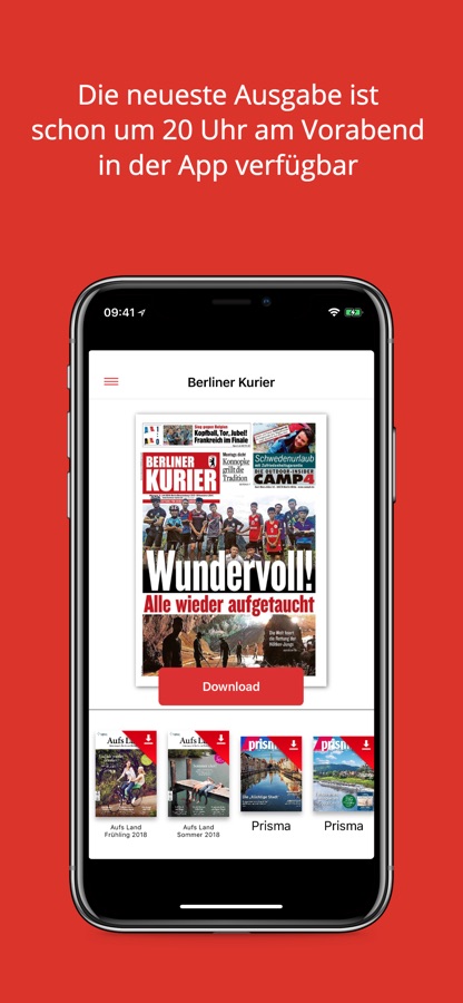 Als Dank für Ihren Download erhalten Sie die erste E-Paper Ausgabe der Berliner Kurier kostenlos. Für einen unbegrenzten Zugriff können Sie das Berliner Kurier Digital Plus Abo bequem in der E-Paper-App abschließen.