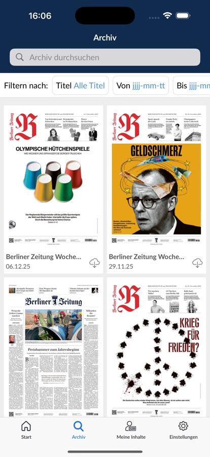 • Suche: Durchsuchen Sie Ihr persönliches Archiv und alle Ausgaben der Berliner Zeitung mit der praktischen Suchfunktion.