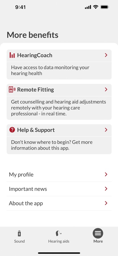 Данное приложение позволяет управлять слуховыми аппаратами с мобильного устройства. В комплект входит приложение для Apple Watch, которое помогает незаметно сменять программы и регулировать громкость (при нахождении в радиусе действия Bluetooth).
