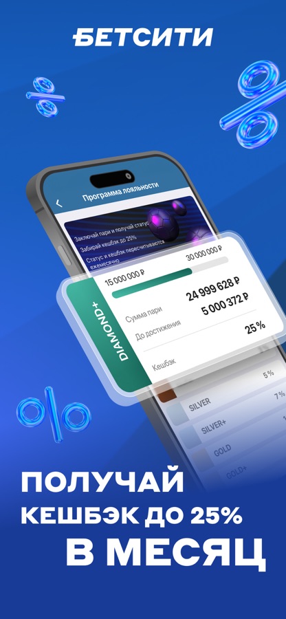 Играй в приложении БЕТСИТИ и получай рекордный кешбэк до 25% ежемесячно!