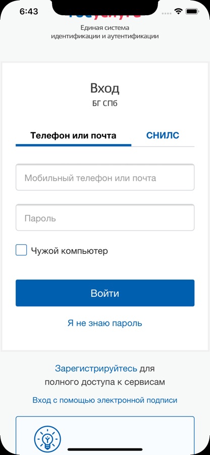 Используйте подтвержденную учетную запись портала Госуслуги для авторизации