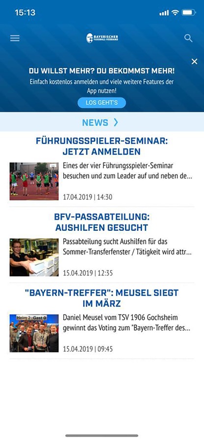 Die kostenfreie BFV-App bietet Dir folgende Features: