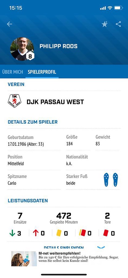 • BFV.de-Login auf Dein Nutzerprofil und damit auf den Fanticker, mit dem Du alle Spiele in Bayern tickern kannst