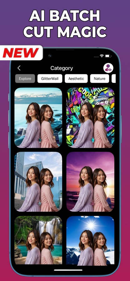 Photo Background Editor использует AI, чтобы сделать тяжелую работу за вас. Просто выберите любое изображение из галереи, и наше приложение автоматически определит всех людей в нем, обрежет вокруг переднего плана и позволит вам загрузить PNG-фотографию с прозрачным фоном.