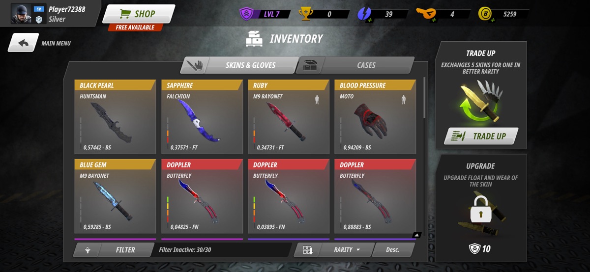 Разблокируйте эксклюзивные награды по мере роста вашего мастерства. Открывайте кейсы и выбивайте скины для персонажа и ножей в стиле CS. Продемонстрируйте свой уникальный стиль, пролетая по картам.
