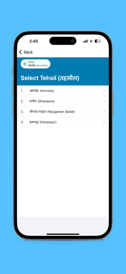 2.Select tehsil/तहसील चुने