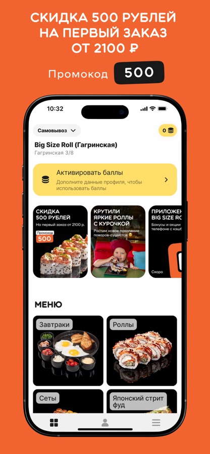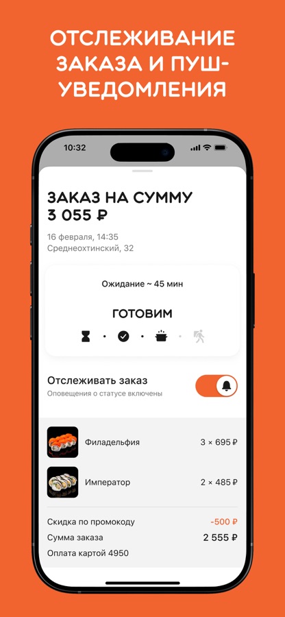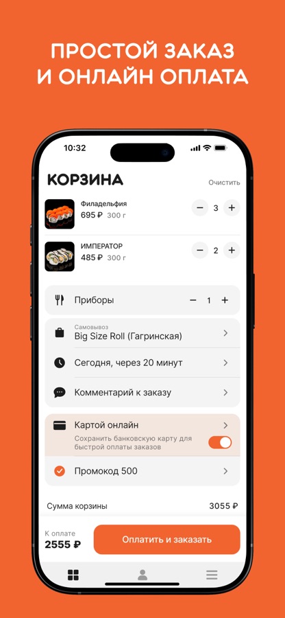 Скачивайте наше приложение, оформляйте заказ и наслаждайтесь любимой едой, где бы Вы ни были! Приятного аппетита!