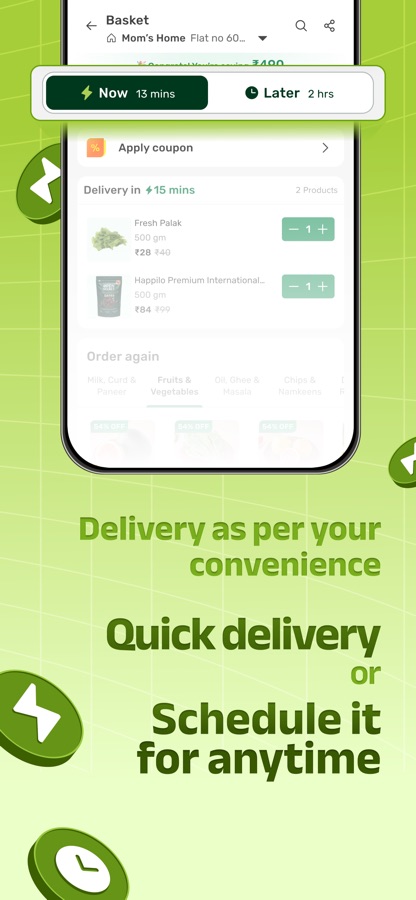 * Wide range of products, including fresh fruits and vegetables: Choose from a vast collection of 20,000+ products across 1000+ national and international brands including Aashirvaad, Amul, Bisleri, Cadbury, Complan, Fresho, Haldiram, Himalaya, Horlicks, Kellogg’s, Lays, Lizol, Nandini, Nescafe, Nivea, Nutella, Patanjali, Saffola, Sunpure, Surf Excel, Vim, Zespri to name a few. And yes, we have a full range of fresh fruits and vegetables, procured directly from farmers!