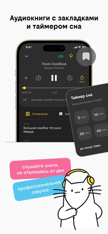 • переключаться с электронной книги на аудиокнигу в любой момент