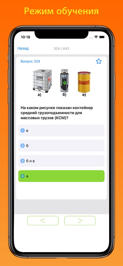 • Подготовка — Позволяет изучить вопросы в текстовом формате с отмеченными правильными ответами;