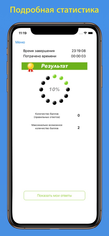 • Работа над ошибками — в режимах «Экзамен», «Марафон» и «Тренировка в избранном» Вы можете сделать работу над ошибками.
