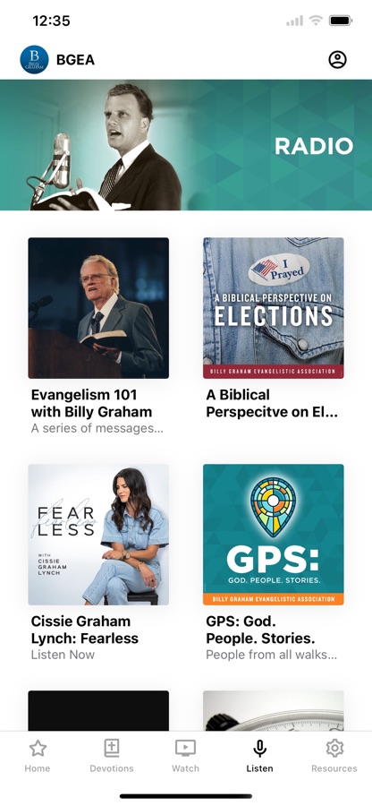 Welcome to the official Billy Graham Evangelistic Association application for mobile devices.