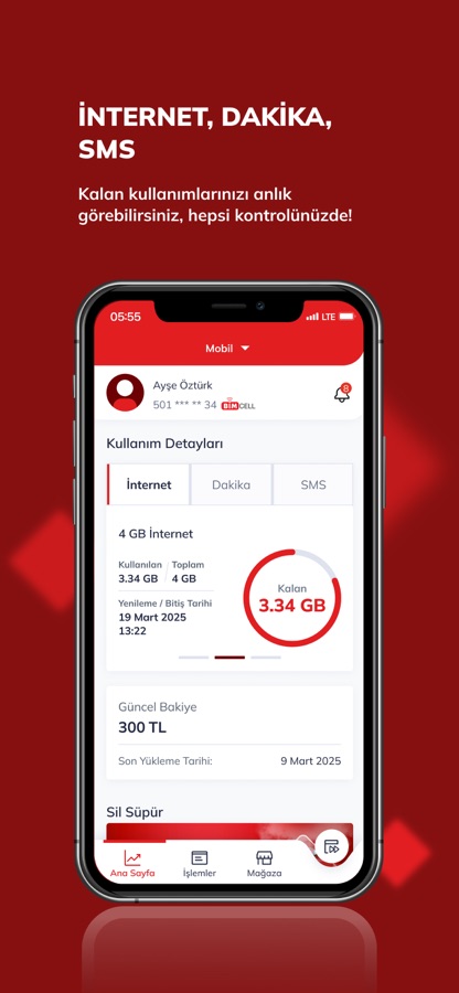 • Mobil hesabınızın Kullanımlar sayfasından paketinizdeki kalan kullanımlarınızı inceleyebilir, bakiyenizi görüntüleyebilir ve her hafta yenilenen hediyeleriyle Sil Süpür oynayarak GB, dakika ve daha birçok hediye kazanabilirsiniz.